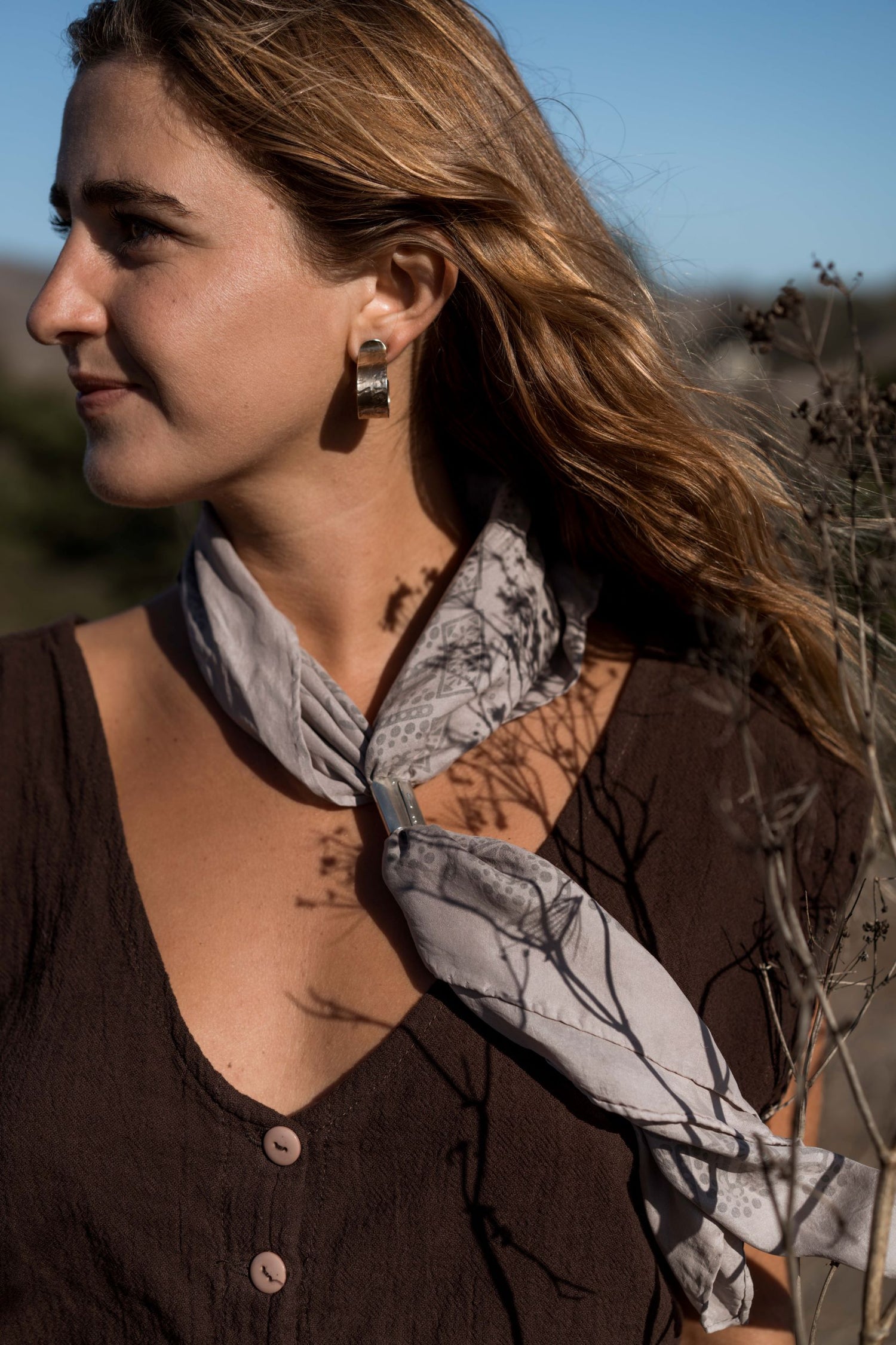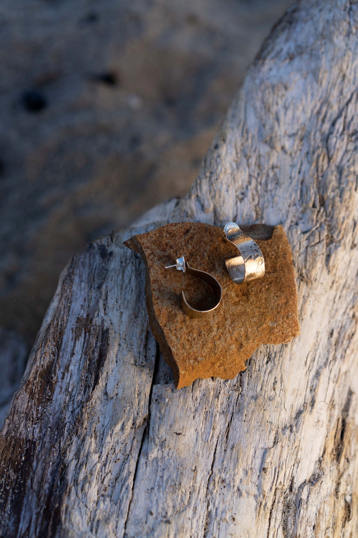 bronze hoop with silver post